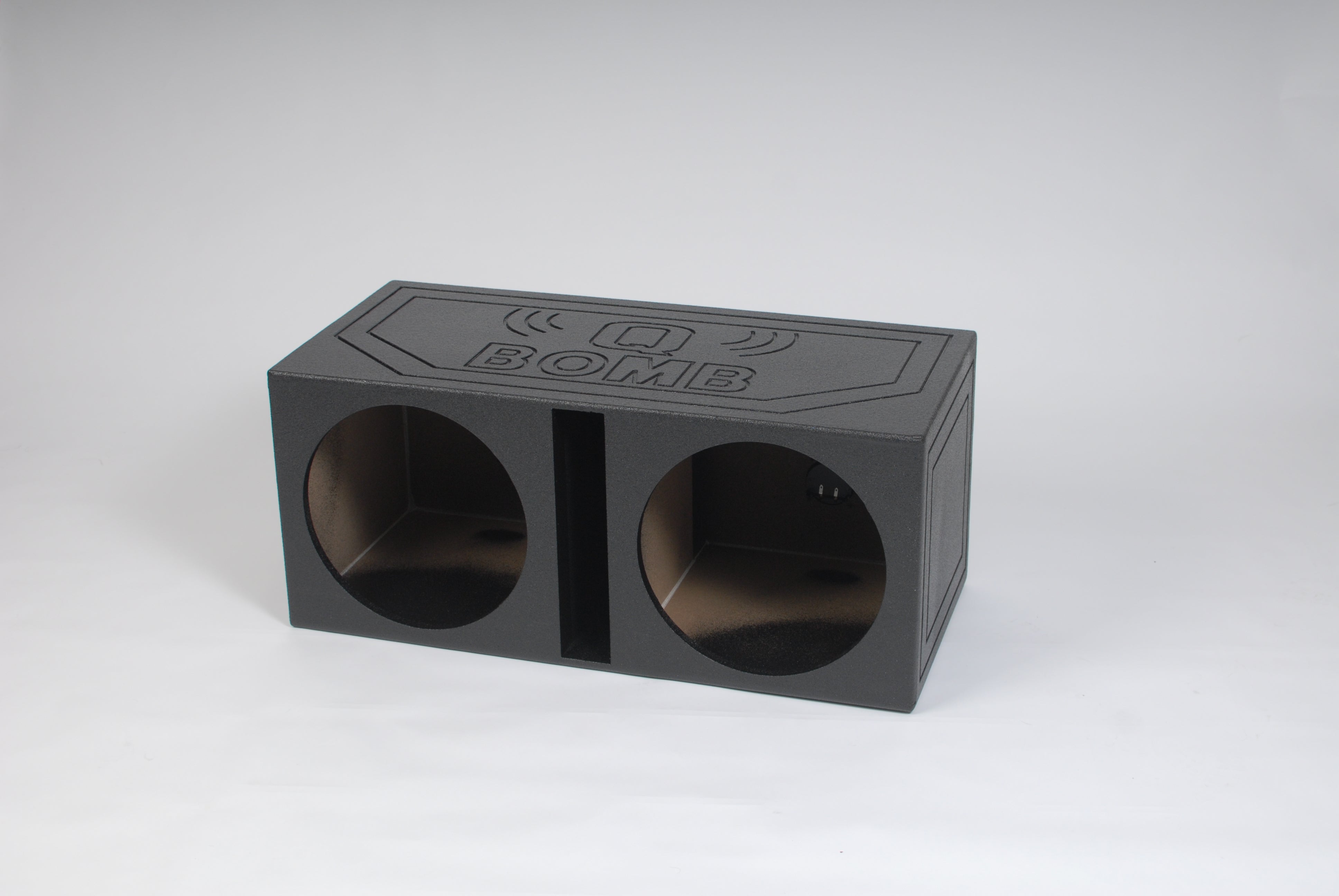 Q POWERQbomb15v qbomb 2hole 15 qbomb w/spray linerFinished with Durable Bed Liner 3/4" MDF High Quality Spring Loaded Terminals Air Space: 2.3 Cubic Feet (per sub)Height: 16.25"Width:... $222.00 USD$222.00 USD$222.00 USD